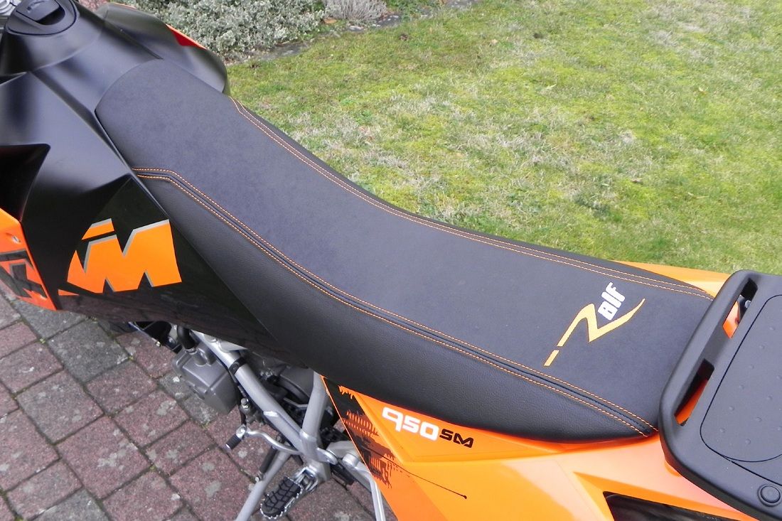 ...- Bei der SM 950 Sitzbank wurde eine fasch eingebaute GEL-Matte entfernt und die vordere Sitzfläche um 2,5 cm mit dem neuen weichen Silikonschaumstoff verbreitert. - Konturschaumstoff und Wasserschutzfolie wurden vor dem beziegen eingearbeitet.