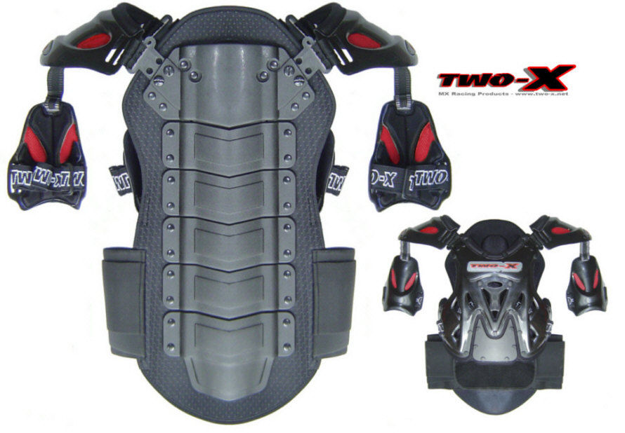 Der Rückprotektor ist beim Axo sogar separat zu benutzen. Dazu musst Du den Brustpanzer und die Schulterprotektoren abschrauben. Das ist etwas umständlich. Dazu liefert Axo noch Gummizüge, die den Rückenprotektor dann an den Schultern fixieren. Die Gummizüge sind im Kaufpreis mit enthalten. Frag mal den Ebay-Händler, ob der Two-X-Nachbau das auch bietet.