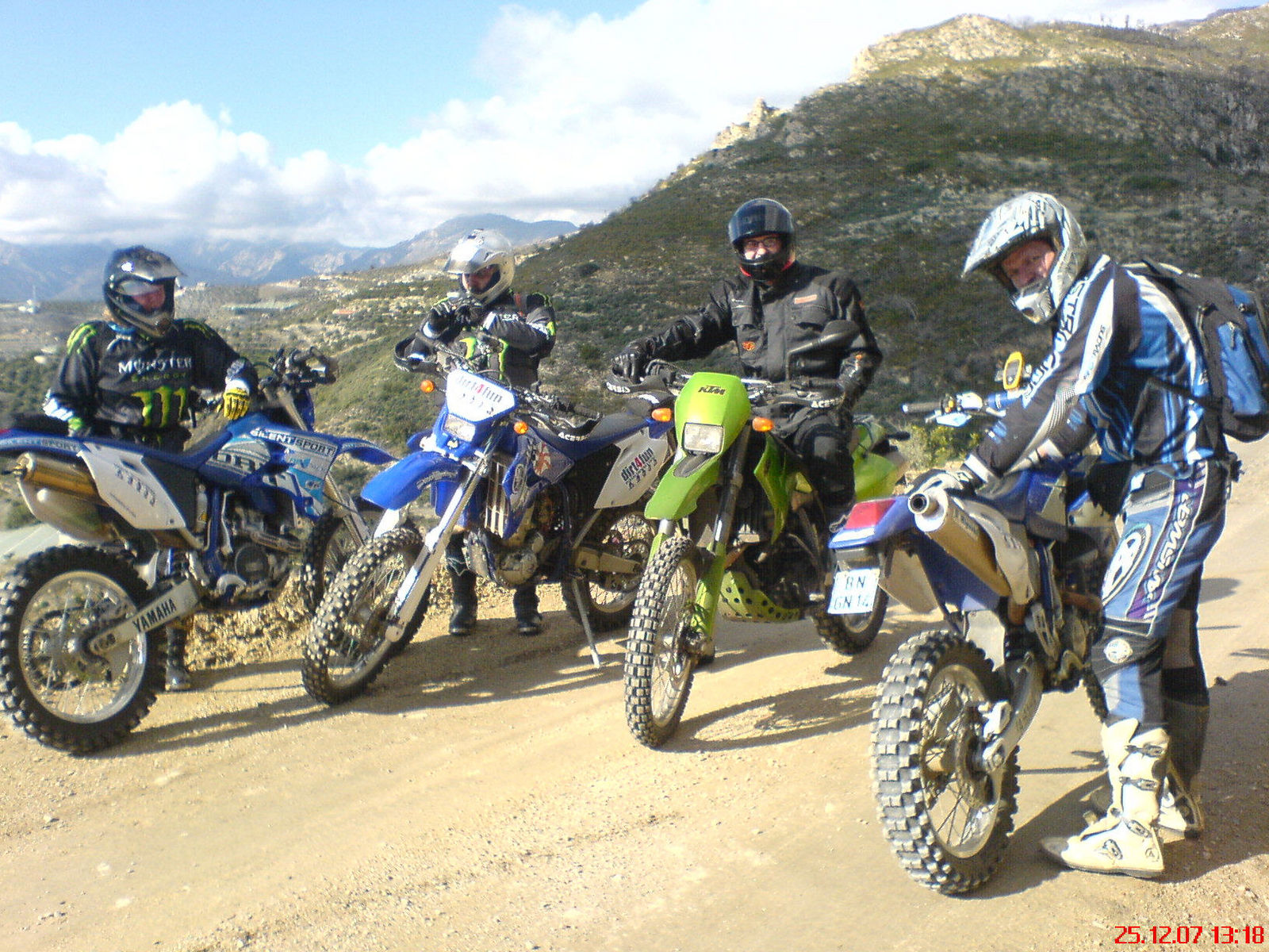 Nachdem es beim Durchcecken der Kati nochmal richtig spannend und teuer wurde, konnte Dank des Freundlichen (KTM-MRZ) planmäßig am 23. gestartet werden. Mit Berechnung wurde der 24.12. als Reisetag ausgewählt, um ohne Kontrollen, Blitzer und Staus mit bis zu 160 auf dem Tacho nach Andalusien zu kommen. Unterwegs mußten lediglich einige verflüchtigte Schräubchen am Hänger erneuert werden. Ab Barcelona wurde es spürbar wärmer, die Sonne schien und eine herrliche Landschaft an den Ausläufern der Sierra Nevada lag nach 30 Stunden und 2.735 km zur Eroberung vor uns.