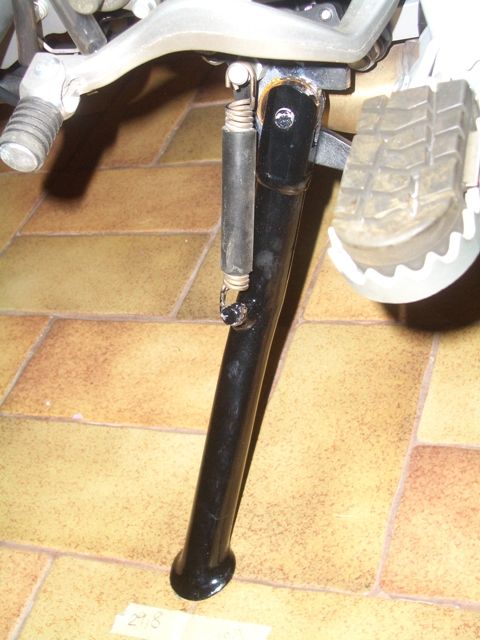 Auf Grund der zum Teil recht starken Beladung hat sich mein Seitenständer verbogen und die Maschine steht teilweise zu schräg. Kommt dann noch weicher Untergrund dazu, ist das Möpp immer kurz vorm kippen.