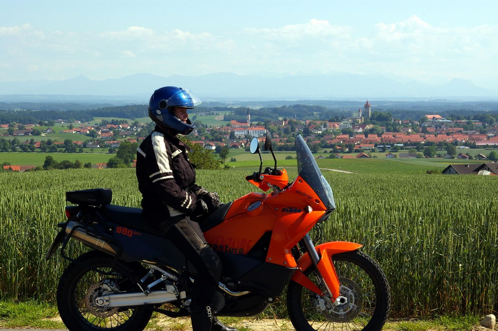 Über Velden, einem typischen niederbayrischen Marktflecken, geht’s Richtung Buchbach und weiter nach Ampfing. Unterwegs hat man bei klarer Witterung und noch mehr bei Föhn, immer wieder einen prächtigen Ausblick auf die rund 100 km entfernten Alpen. Heute jedoch ist es bedeckt und diesig. Immer wieder wandert unser Blick sorgenvoll in über den Himmel.