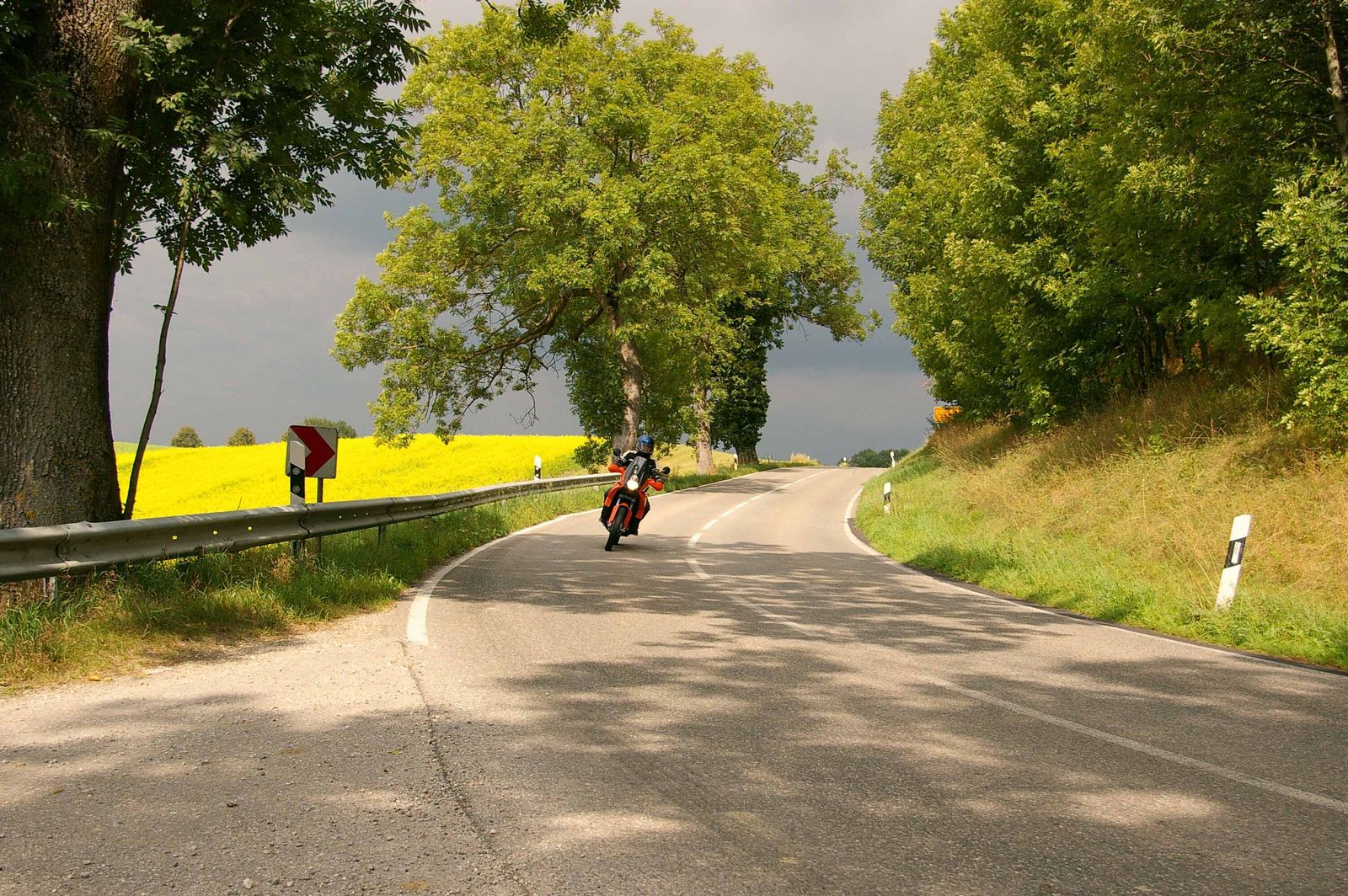 Entdecken ist sowieso das Thema dieser Tour. Da wir nicht auf breiten Bundesstraßen unterwegs sein wollen, sondern uns die kleinen netten Nebenstraßen ausgesucht haben, an denen es jede Menge zu sehen gibt und Fahrspaß garantiert ist, braucht man eine gute Karte oder ein Navi. Ein 1:100 000er Maßstab sollte es schon sein. Mit einer Karte auf der Hamburg und Venedig auf einer Seite sind wird man auf dieser Tour nichts finden.