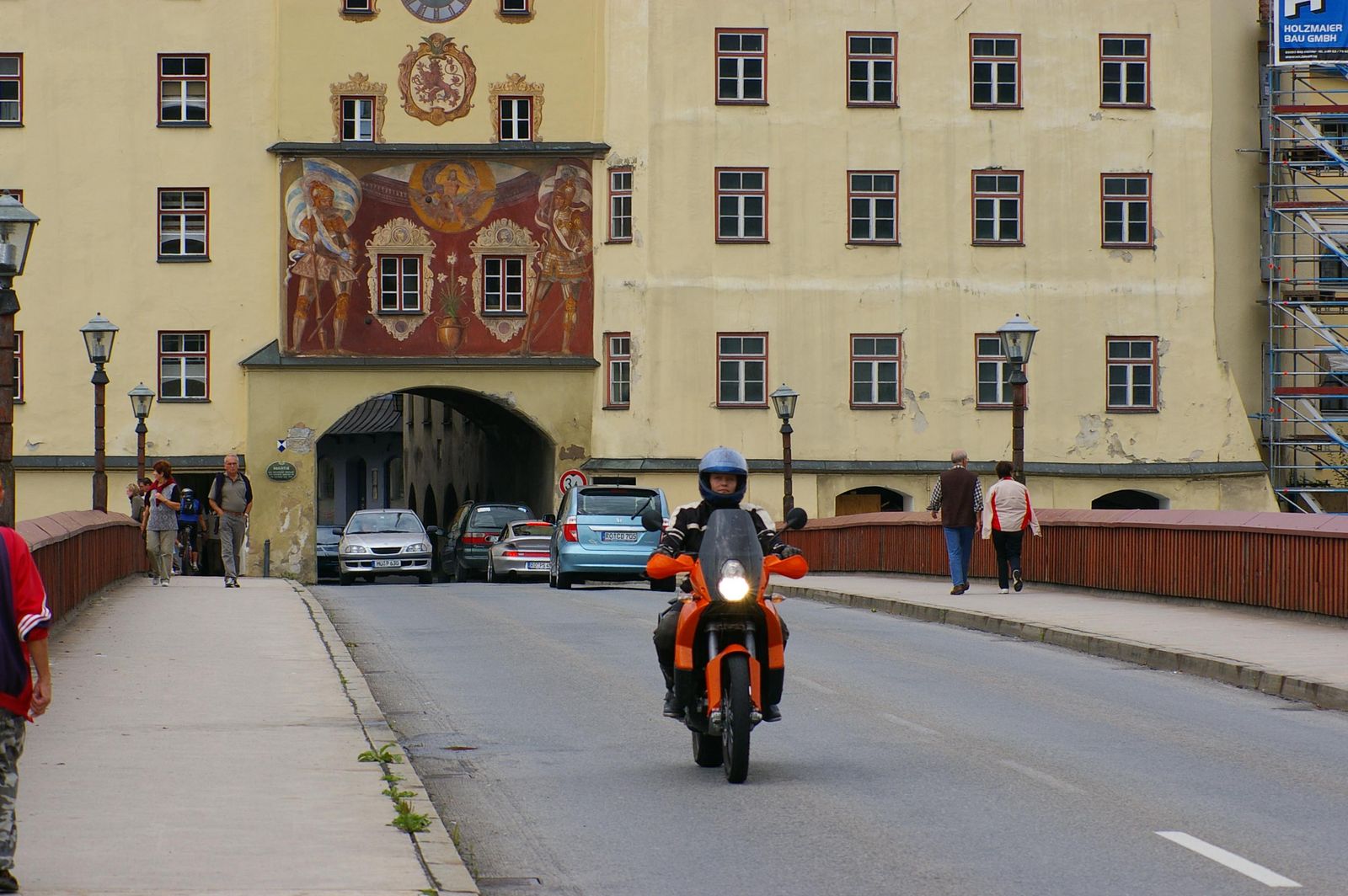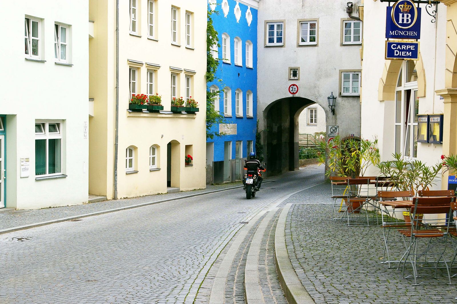 Von Amerang sind es keine 15 Kilometer nach Wasserburg am Inn. Auf einer Innschleife liegt die Altstadt mit ihrem mittelalterlichen Ambiente die auf jeden fall besucht werden sollte. Da sie nicht allzu groß ist, lässt sich die Altstadt in einer halben Stunde durchschlendern, was auch in Motorradklamotten gut möglich ist. Einige Straßencafes laden zu einem Capuccino oder Espresso ein. Wenn wir hier sitzen und die Leute an uns vorbeiflanieren lassen, fühlen wir uns wie im Urlaub.