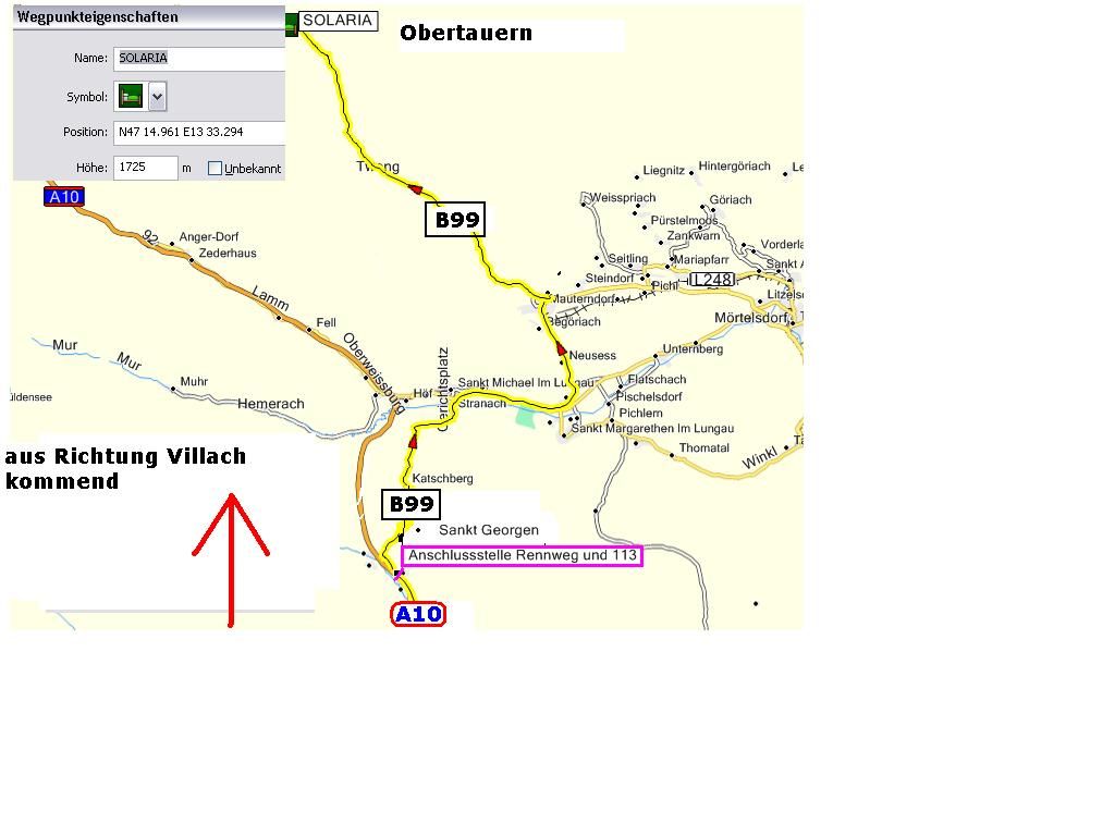 Und wenn man von Süden => Villach aus kommt an der "Anschlussstelle Rennweg" ab auf die B99 über den Katschberg nach Obertauern zum Chris.