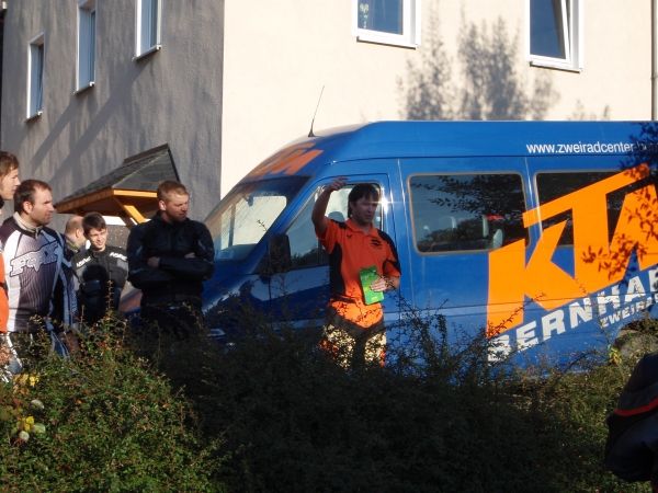 am Sonntag den 12. Oktober, 9.00 Uhr gibt`s das jähliche "Abgasen" bei KTM Bernhardt in Lößnitz. Wie im letzten Jahr wird es eine geile Tour in`s tschechische Erzgebirge inkl. Mittagessen + Überraschung + Eventvorschau 2009 etc. geben.