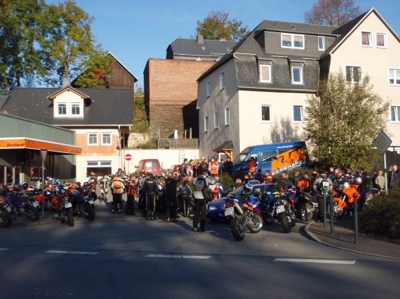 Es waren 62 Rider am frühen Morgen um 9.00 Uhr startbereit vor`m Laden in Lößnitz versammelt! Die Tour ging in zwei Gruppen (langsam & schnell) in tschechische Gefilde. Nach einen gemeinsamen Mittagessen konnten wir wie jedes Jahr die Fahrkünste von unseren Fahrlehrer Peter bestaunen. Danach bedankte sich der Chef Rene Bernhardt bei allen Teilnehmern für`s kommen und bei allen Stammkunden für ihre Treue sowie erfolgreiches Geschäftsjahr 2008. Leider sind auch paar Rider gestern "auf der Strecke geblieben". Aber zum Glück ist dies Alles relativ harmlos abgegangen. (1 x Schlüßelbeinbruch und `ne Karre lag im Grenzflüßlein unter Wasser) Ich hoffen den betroffenen Ridern geht es wieder besser, und der erste Schock ist überstanden.
