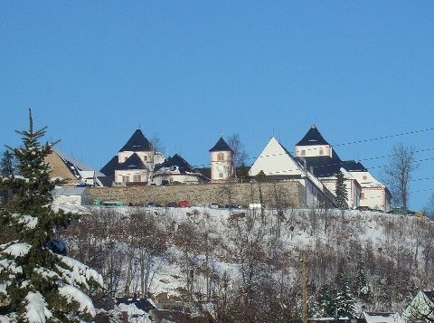 Johanngeorgenstadt war völlig unspektakulär. Alles geräumt und auch nicht mehr Schnee als in Leipzig. Dann ging es über Schwarzenberg endlich in Richtung des eigentlichen Ziels Augustusburg.