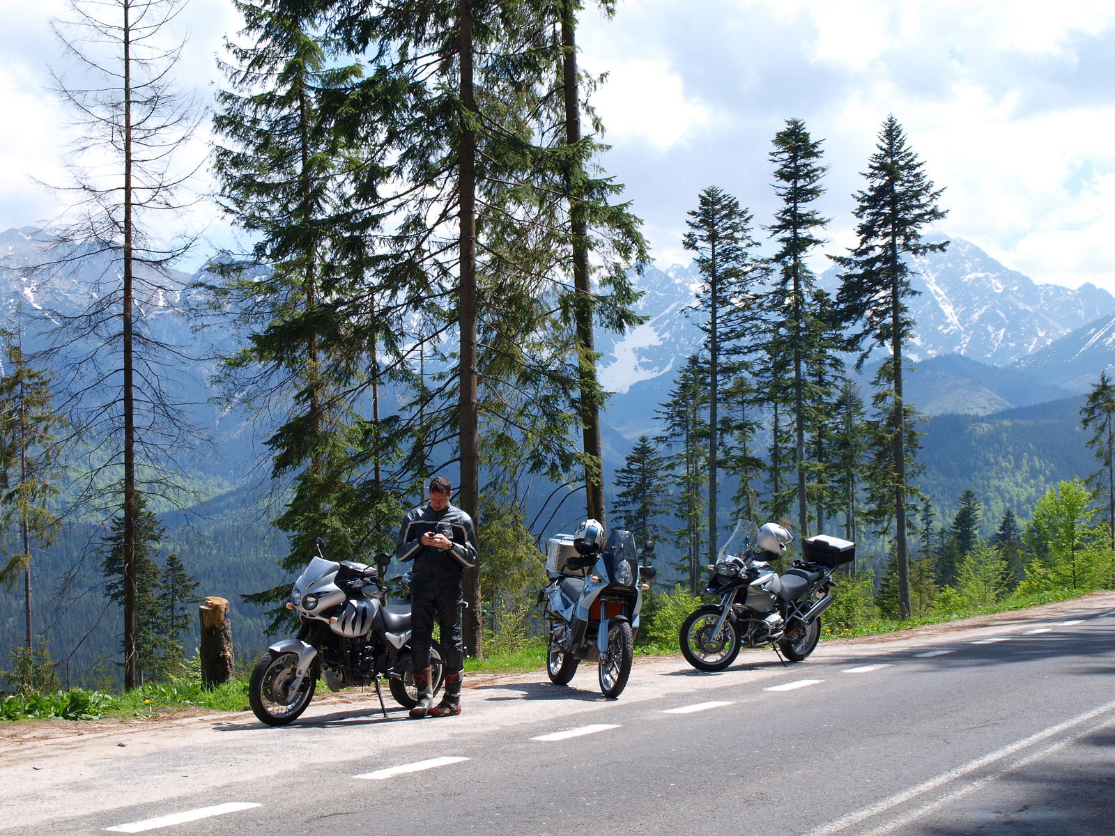 Am ersten Fahrtag haben wir den NP Hohe Tatra umrundet (auf 99 % Teer - war leider nix mit legalem Schottern). Fast jede Abkürzung bzw. Stichweg in die Wälder war mit dem entsprechenden Verbotsschild (z.T. auch Schranken) versehen. Die Teerstraßen selbst sind leider sehr häufig mit kleinen Steinen/Sand, die von den Rändern eingewaschen werden oder von Steinbruch-LKW verloren werden mit Vorsicht zu genießen. Offenbar gibts noch einen eklatanten Mangel an Kehrfahrzeugen.