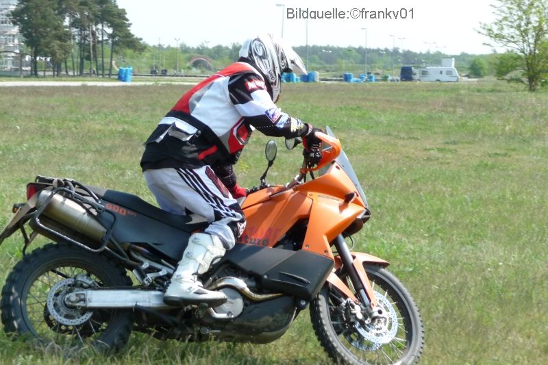 Mich irritiert etwas dein "Knie am Tank",ich weis ja nicht wie groß du bist,aber wenn ich(1,8Cool auf meiner stehe, bekomm ich nur mit allerlei Verrenkungen die Knie an den Tank,aber keinesfalls bei einer offroadtauglichen Position.