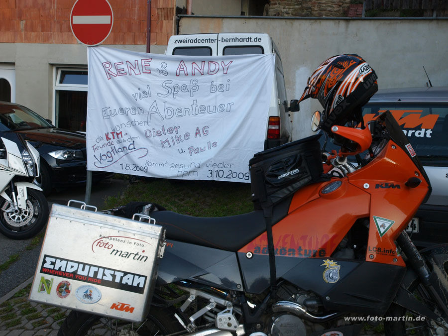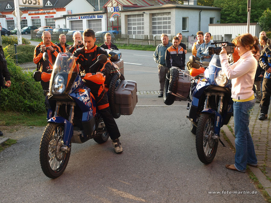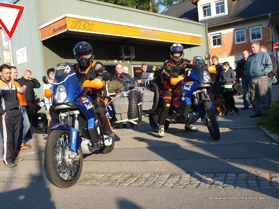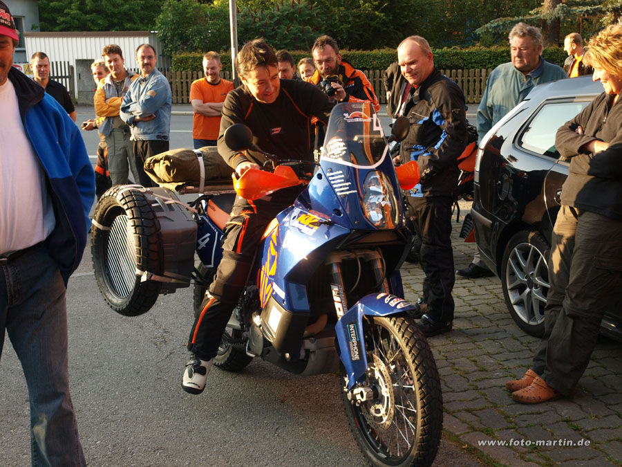 Mein Mech und sein Sohn (KTM-Bernhardt, Lößnitz) starten zu einer 2-monatigen Extremtour mit 25.000km bis nach Ulan Bator.