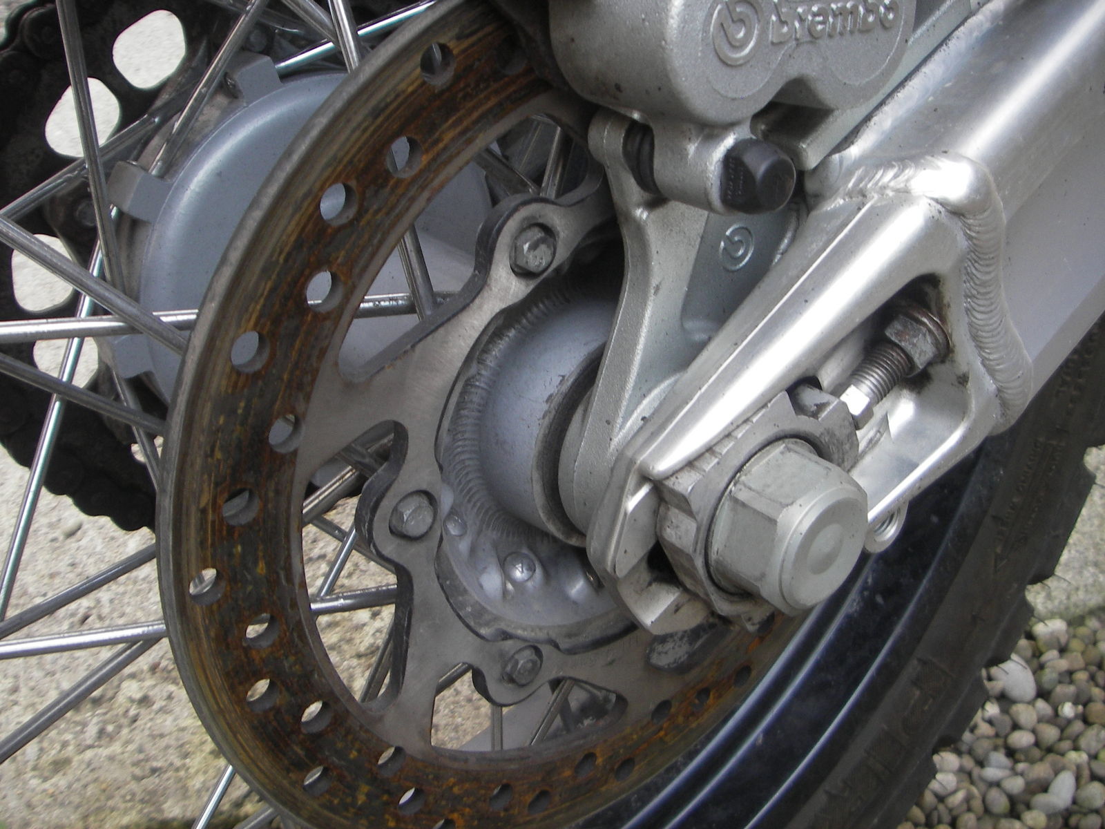 Alle Bremsscheiben rosten stark, hintere hat ein ungleichmäßiges Verschleißbild; einzelne Verkleidungsschrauben fangen an zu rosten, alle blanken Aluteil sind fleckig angelaufen.