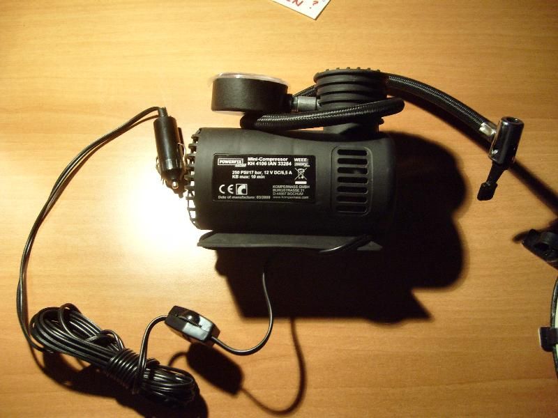 um den Hinterreifen nach der Reperatur wieder über den Hulb der Originalfelge zu bringen brauchst Du ungefähr 4-4,5 Bar. Ich hab 3 CO Patronen mit einem regulierbaren Ventil unter der Sitzbank, überlege mir aber die Anschaffung einer neuen Pumpe, da meine alte beim letzten mal versagt hat.