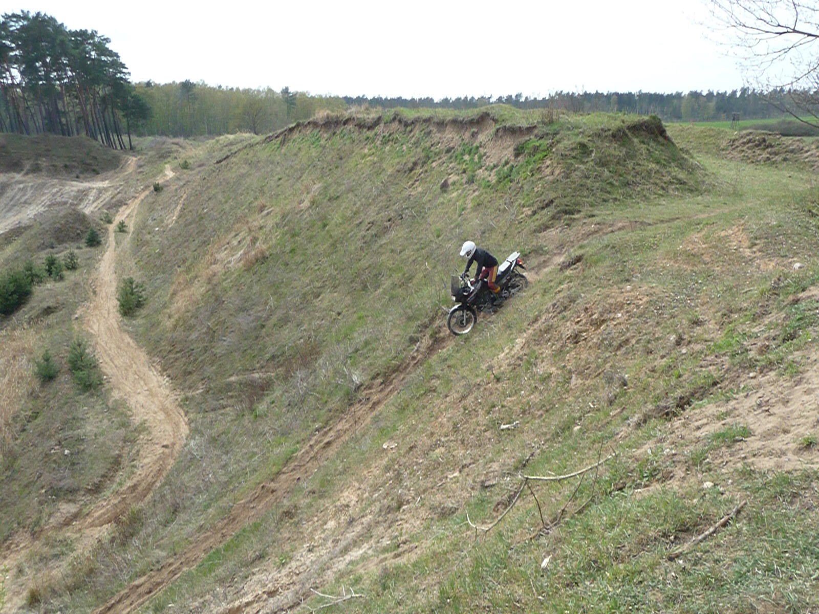 Heute Nachmittag waren wir mal wieder auf dem TÜP umme Egge und konnten uns dort so richtig austoben. FlameDance konnte etwas für seine Teilnahme an der Rallye Dalmatia trainieren und wir zwei hatten einfach nur Spaß bis zur totalen Erschöpfung. Zu Hause angekommen hat die schokotrine doch glatt behauptet, die Bodenprobe an ihrem Helm wäre echter glazialer Geschiebemergel ohmy .