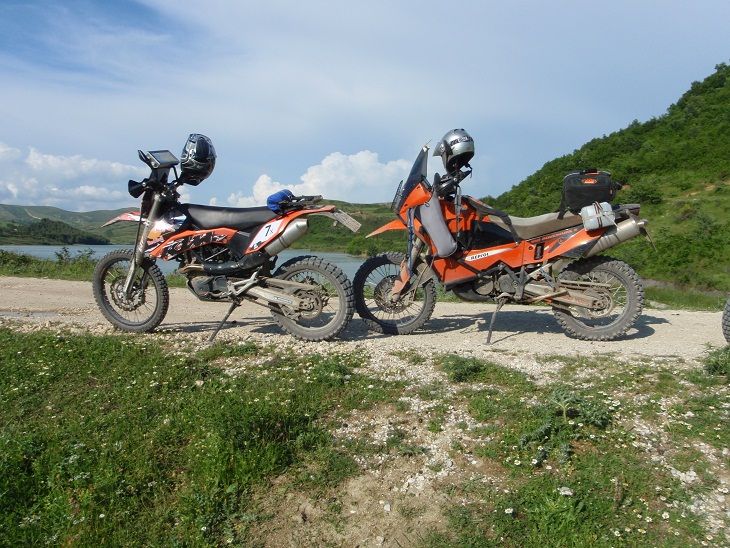 2.Tag: Nur mit Fahrerhemd über den Protektoren geht es bei schönen Wetter Richtung Buz, wo wir einige Tschechen mit Ihren BMW’s sehen. Die Strecke lohnt sich und die Aussicht ist super… übrigens ist auf allen Strecken die wir gefahren sind das Panorame der Hammer. Der Untergrund ist Steinig, schotterig und spaßig. Weiter geht es über Tepelene nach Fier, wobei wir die Streckenlänge voll unterschätzen und mit dem letzten Licht die Piste verlassen. Zurück nach Berat geht’s dann über die Autobahn, die allerdings auch sehr abenteuerlich ist. Fehlende Beleuchtung der Autos, Fußgänger, Mofas im Gegenverkehr und mitten drin ein Kreisverkehr…