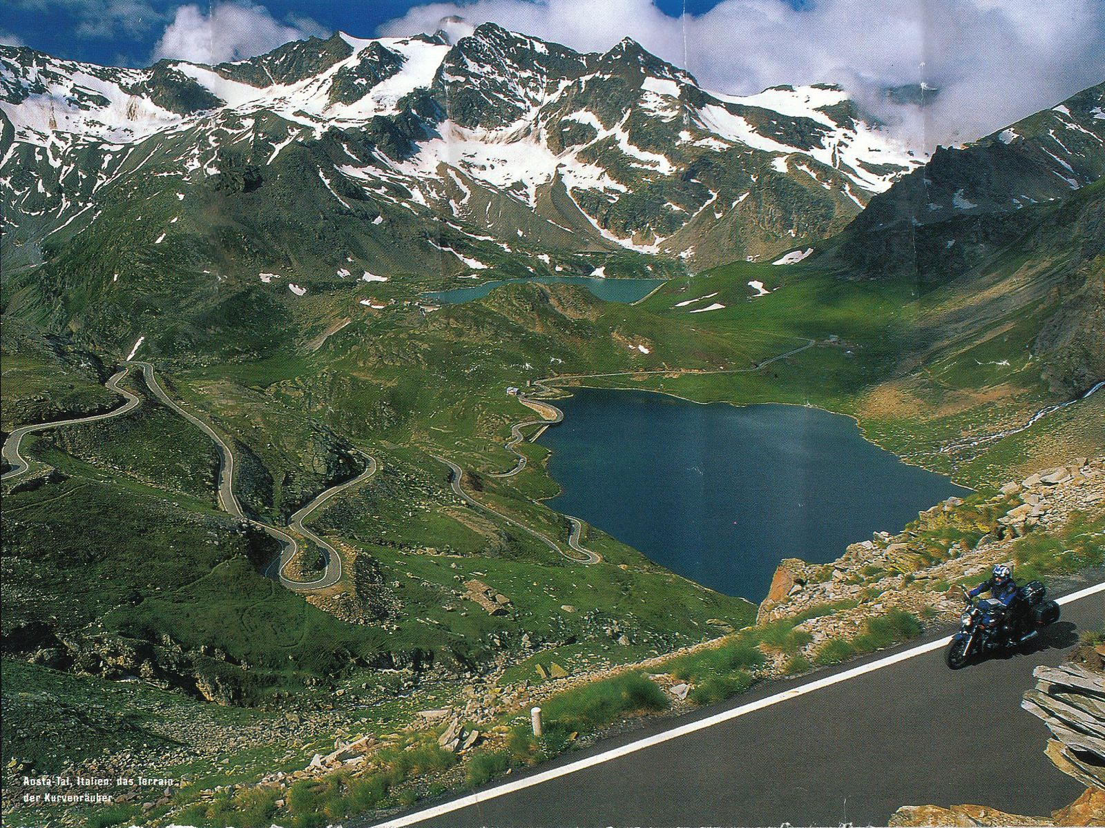 Ich kann jedem nur empfehlen diese Gegend mal zu befahren und näher anzusehen. Es lohnt sich sehr. Die Straße von Ivrea-Cuorgne-Locana-Noasca-Ceresole Reale über den Colle del Nivolet ist eine Sackgasse. Sie endet am Refugio wenige Km nach dem Pass. Die ursprüglich zu touristischen Zwecken gedachte Verbindung zum Aostatal wurde leider nie fertiggestellt. Es gab aber vor einigen Jahren eine Gruppe die es mit den Mopeds geschafft hat .