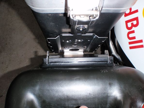 Die Laschen meiner Edelstahlplatten an den Tanks passen nun in die TT Halterungsplatten mit Winkel, in die Langlöcher durch die normalerweise die Spanngurte gezogen werden werden die Kanister einfach eingesteckt, zurückgeklappt, dann flutschen die oberen Laschen durch die senkrechten Löcher der Montageplatte und mit 2 Federsteckern gesichert.
