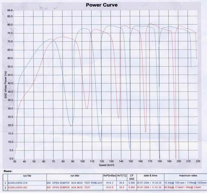 However I'm not sure if I should be happy with the result. It seems that the engine still is missing a lot of top-end power only 79.6 Hp at the wheel.
