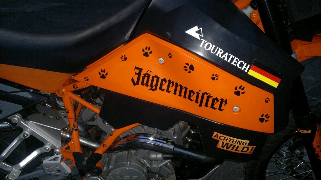 ...da bin ich noch gar nicht drauf gekommen....da steckt nomaal ´ne Plastikflasche mit Trinkschlauch drin (Camelbag für Arme). Dieser Halter wie auch die Tasche am Spiegel sind - ich war leidenschaftlicher Mountainbikefahrer - aus dem Fahrradzubehör. Die Tasche (1,99 EUR) hing unterm Sattel am Rad und dient nun als Bremsscheibenschlosstasche. Der Multi-Flaschen- und Dosenhalter ist auch Fahrradzubehör und wurde von mir an der Schraube der Handguards richtig feste angebracht.