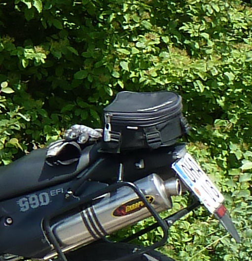 ich habe einen umgebauten Tankrucksack hinten drauf, da sind meine Regensachen drin.