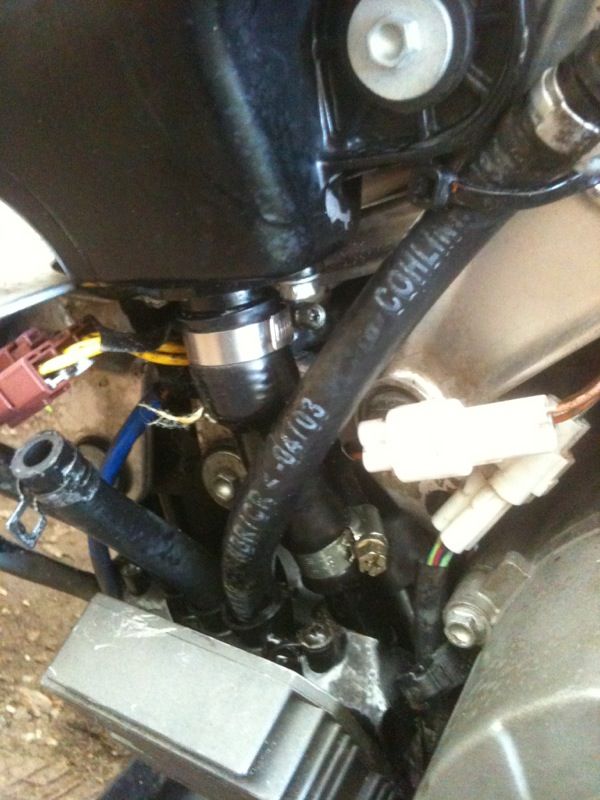 Beim abstellen der Motors platzt der Schlauch ( unterm Öltank der mit 2 Durchmessern ) Dort wo die gelben Fasern zu sehen sind.