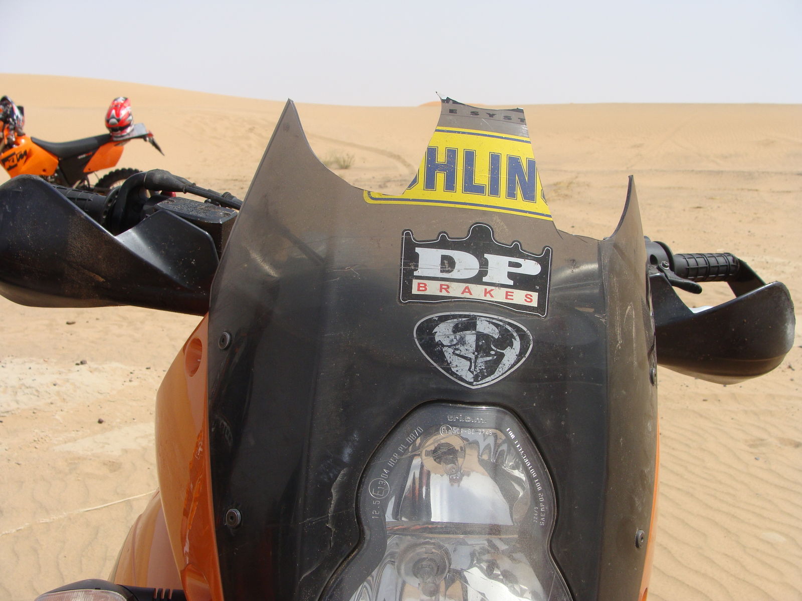 So sieht das Original-Windschild aus, wenn man bei Abgang über den Lenker mit den Cross-Stiefeln hängen bleibt........