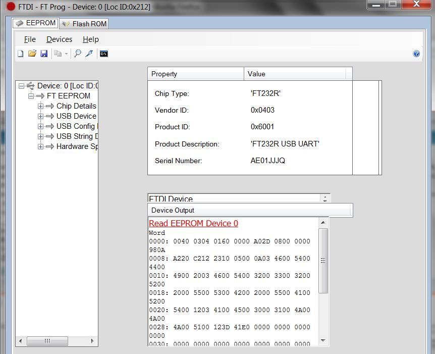 Die Tests funktionieren natürlich ohne, dass Du das Kabel am Moped angeschlossen hast. USB des Diagnosekabels ins Notebook, FT_Prog starten und auslesen.