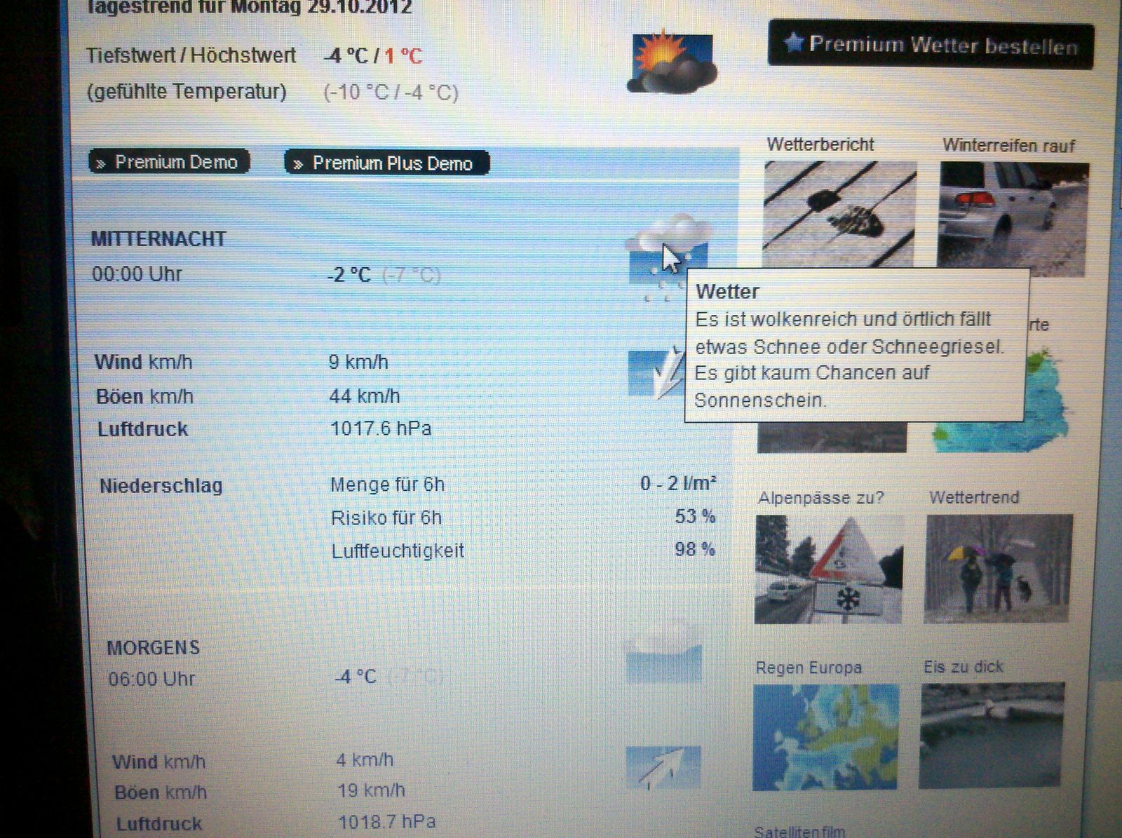 Wetter auf morgen-man beachte die Uhrzeit...und die Chancen auf Sonnenschein...