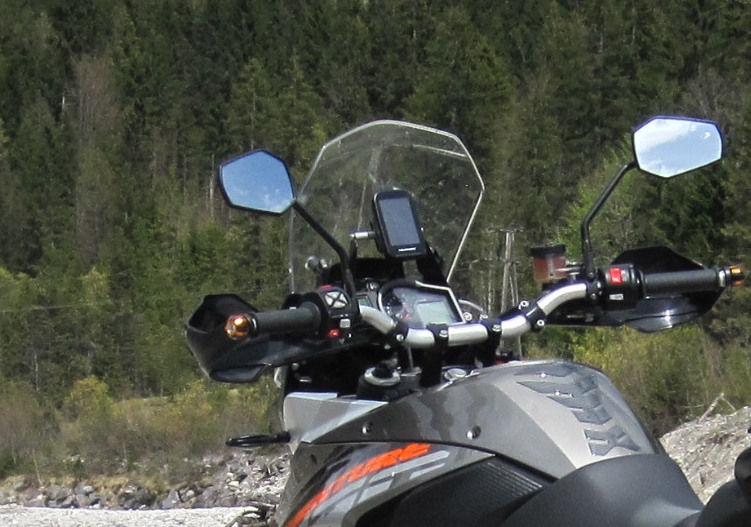 Die beiliegende Ram-Mount finde ich übrigens prima, bei anderen Befestigungen kann ich aus meiner Sitzriesenposition sonst vom Kombiinstrument nämlich nix mehr sehen.