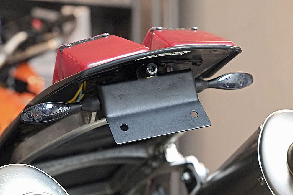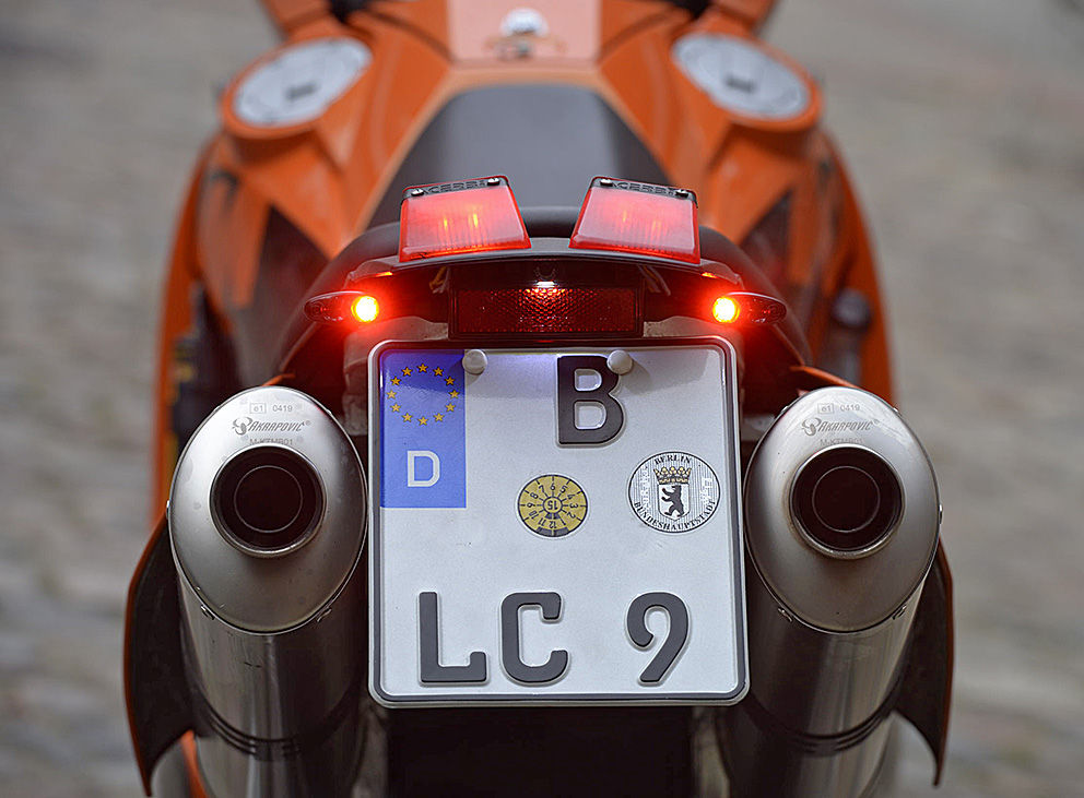 Die beiden oberen Lichter sind eine Hommage an die 950 Rally und nicht Tüvkonform. Angeschlossen (zusätzlich) ans Bremslicht, mit einem Klick stillzulegen.