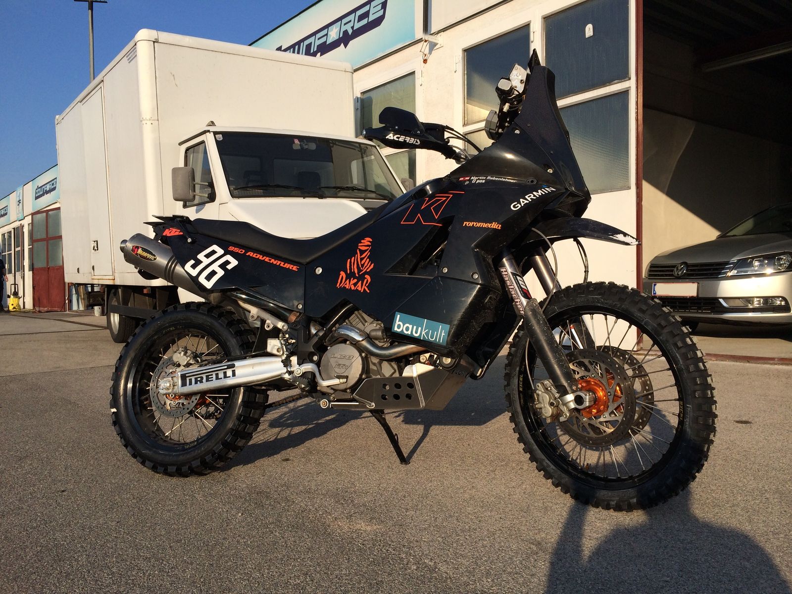 -fahrwerk ueberarbeiten. nicht unbedingt die federn tauschen (ich fahr nich immer mit den originalen mit 48tsd km drauf), aber die innereien verfeinern. das bringts. hab noch nie bei einer rally durchgeschlagen damit (bei der 690er zb in afrika sehrwohl...)