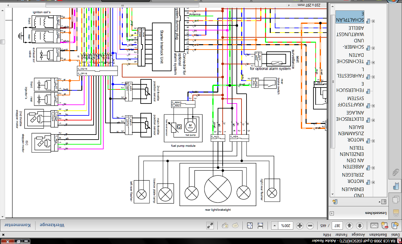 Hab mich auch gewundert wegen dem Kabel. Ist aber tatsächlich nur ein 0,25 mm2 Querschnitt. Werd für das neue Kabel einen 1,0 mm2 Querschnitt verwenden. Problem ist jetzt nur, dass das Kabel zwischen dem Ausgang aus dem Hauptkabelbaum und dem Bremslichtschalter gerissen ist. Bringt ja nix wenn ich jetzt nur das Stück mit einem 1,0 Querschnitt erneuere. Muss dann wohl den Hauptkabelstrang öffnen und die ganze Leitung erneuern. |