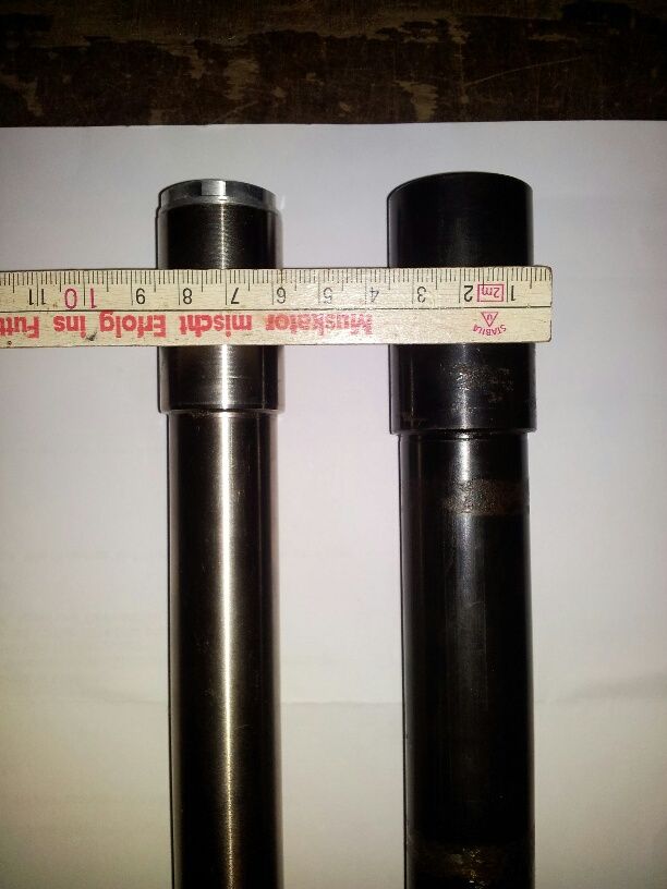 puuuhhh...jetz geht's ins Eingemachte...hab wochenlang nach ner LC8-Gabel recherchiert, aber nix gefunden. Kurz vor Weihnachten hat in ebay jemand ne 100km gefahrene Gabel einer 690 vertickt. Da das auch ne WP4860 ist und ein anderer das Innenleben für ne LC8-Gabel für faires Geld angeboten hat, hab ich beides klar gemacht. Selbst ne komplette gebrauchte LC8-Gabel hätte ich überholen lassen; und ob jetz nur Überholung oder, wie in meinem Fall, ein Umbau wird sich von den Kosten nicht viel nehmen. Und: die Standrohre der 690 sind schon schön schwarz Laughing Da ich die Gabelfüße quasi auch demnächst an den Start kriege und dann aus dem Geraffel ne LC8-Gabel gemacht wird, nutze ich die Zeit zu checken, ob ich evtl jetz auch noch ne andere Achse brauche.