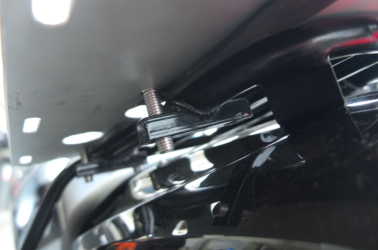 Dort Löcher hineinbohren und ein Gewinde reinschneiden. Anschließend in die Gegenstücke eine kleine Mulde reinschleifen oder feilen und mit z.B. Gummi bekleben, damit Sie den originalen Gepäckträger nicht zerkratzen.