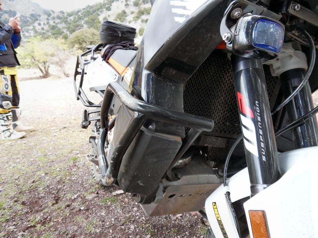 Ich glaube nicht das der KTM (TT)-Bügel das Mopped so geschont hätte. Die Krallenbefestigung hätte sich in den Rahmen "gefressen". Deshalb schrieb ich oben, dass ich den sw-motech Bügel besser finde.