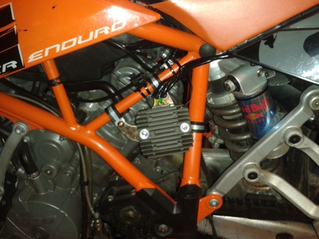 Wieder zu Hause habe ich alles kontrolliert und soweit war alles OK. Regler funktioniert einwandfrei und lädt die Batterie gut. Der Grund für die Hitze ist sicher auch die Tatsache daß bei der Superenduro der Regler genau über dem Auspuff liegt und dort ziemlich viel Hitze direkt an den Kühllamellen vorbei kommt. Bei sehr langsamer Fahrt kommt auch keine Kühlluft hinzu.