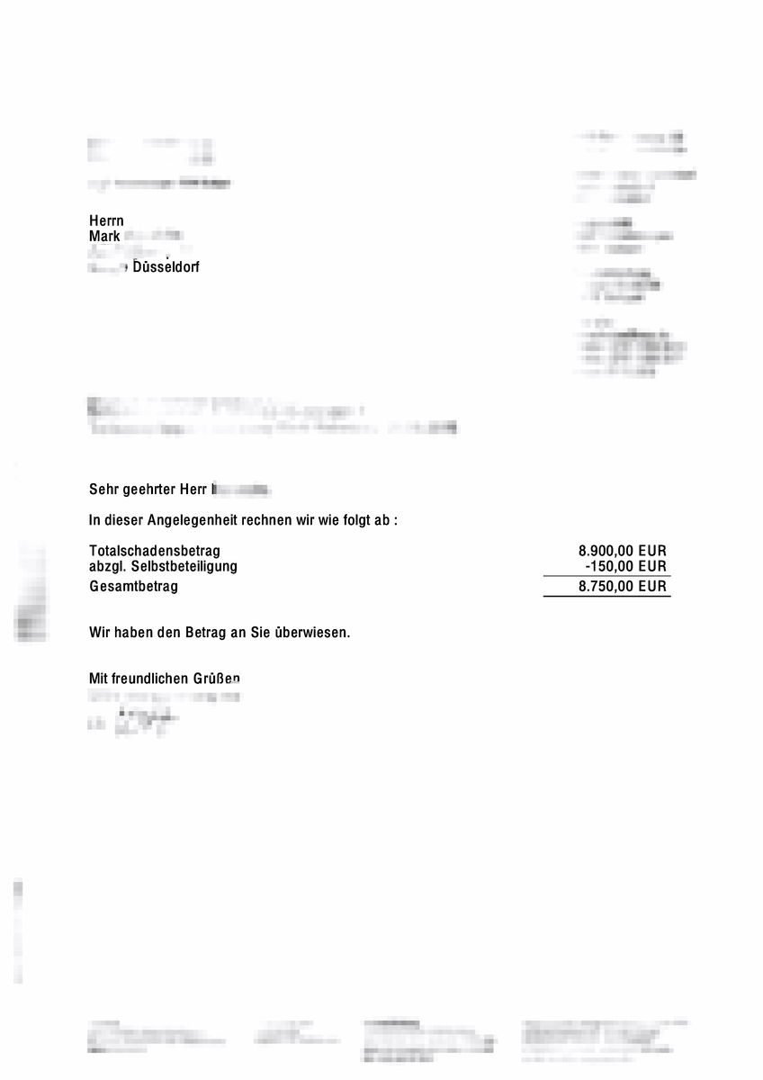 Jetzt wurde über das Gutachten hinaus noch mal mit dem Sachbearbeiter verhandelt und es wurde noch kulanter Weise etwas Geld für eigentlich nicht versichertes Zubehör aufgeschlagen.