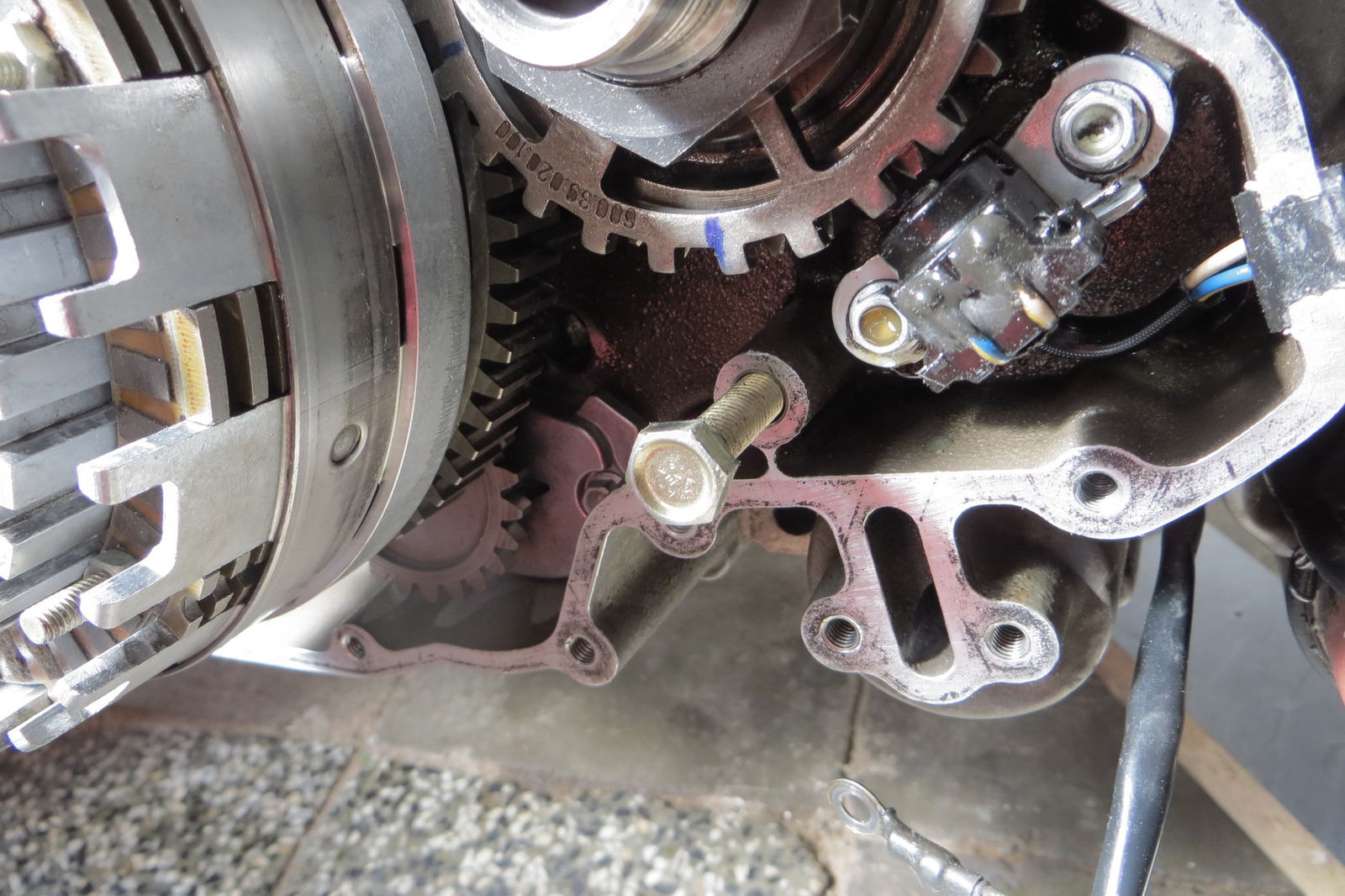 Übrigens, mit Gang rein wird's nichts, da dreht der Motor bzw. das Rad (auch auf dem Boden stehend) trotzdem durch...