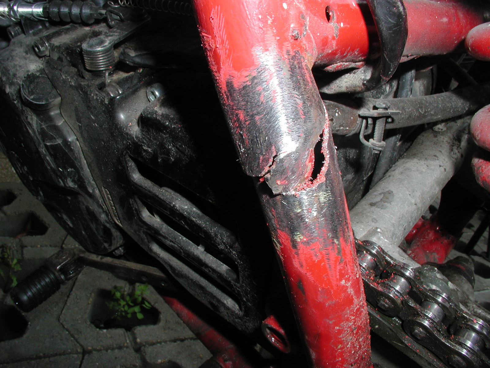 Schadensursache könnte mein Kampfgewicht von 70kg sein oder die unsachgemäße Nutzung auf nicht befestigten Straßen.