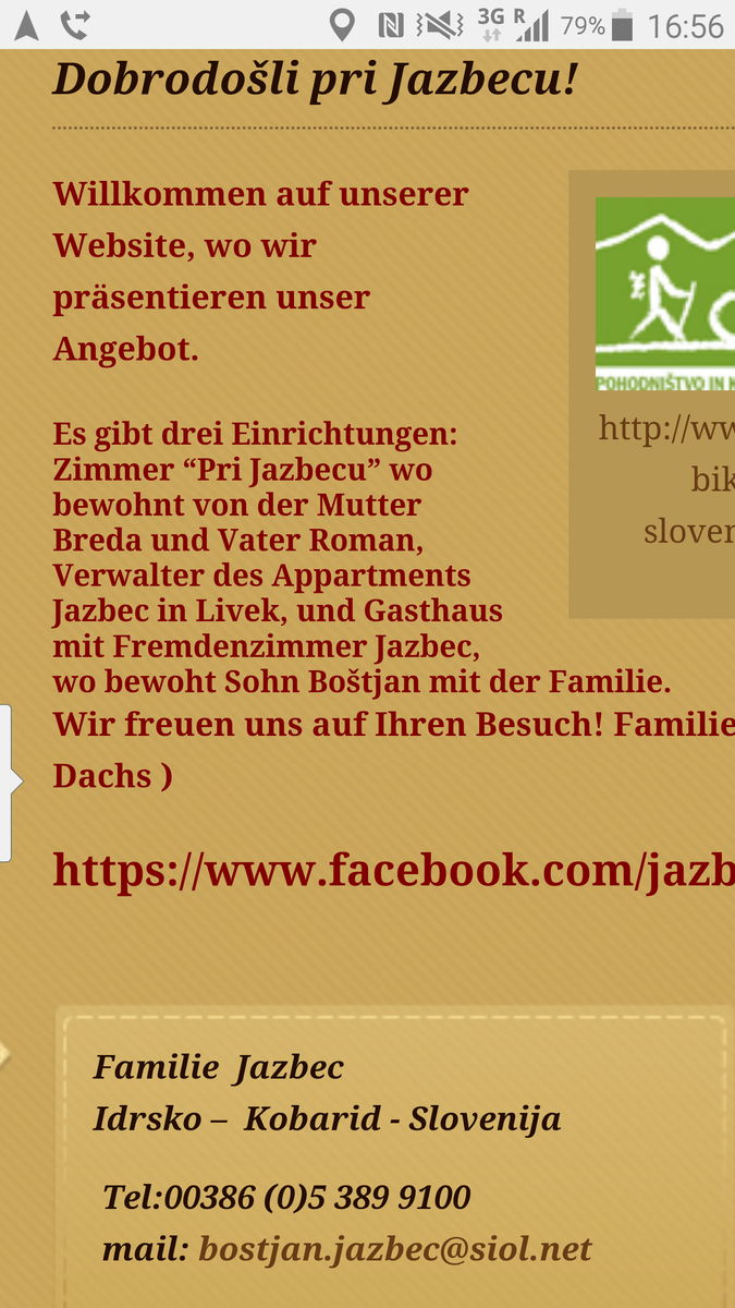 | ipse @ Mo, 25. Jul 2016, 10:52 hat folgendes geschrieben: | | Ist aber nicht Kobarid, sondern etwas südlich in Idrsko, und es gibt zwei Jazbecs! | Ja Bostian ist der Sohn; Unterkunft vom Vater ist nur 250 m weg und das Frühstück dort extrem reichhaltig und gut gewesen...
