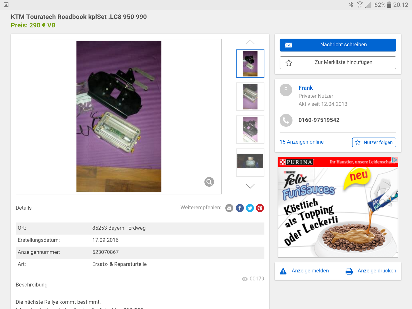 Finde allerdings seine 290,-€ sehr ambitioniert, wenn ichnein neues F2R schon für 235,-€ bekommen.