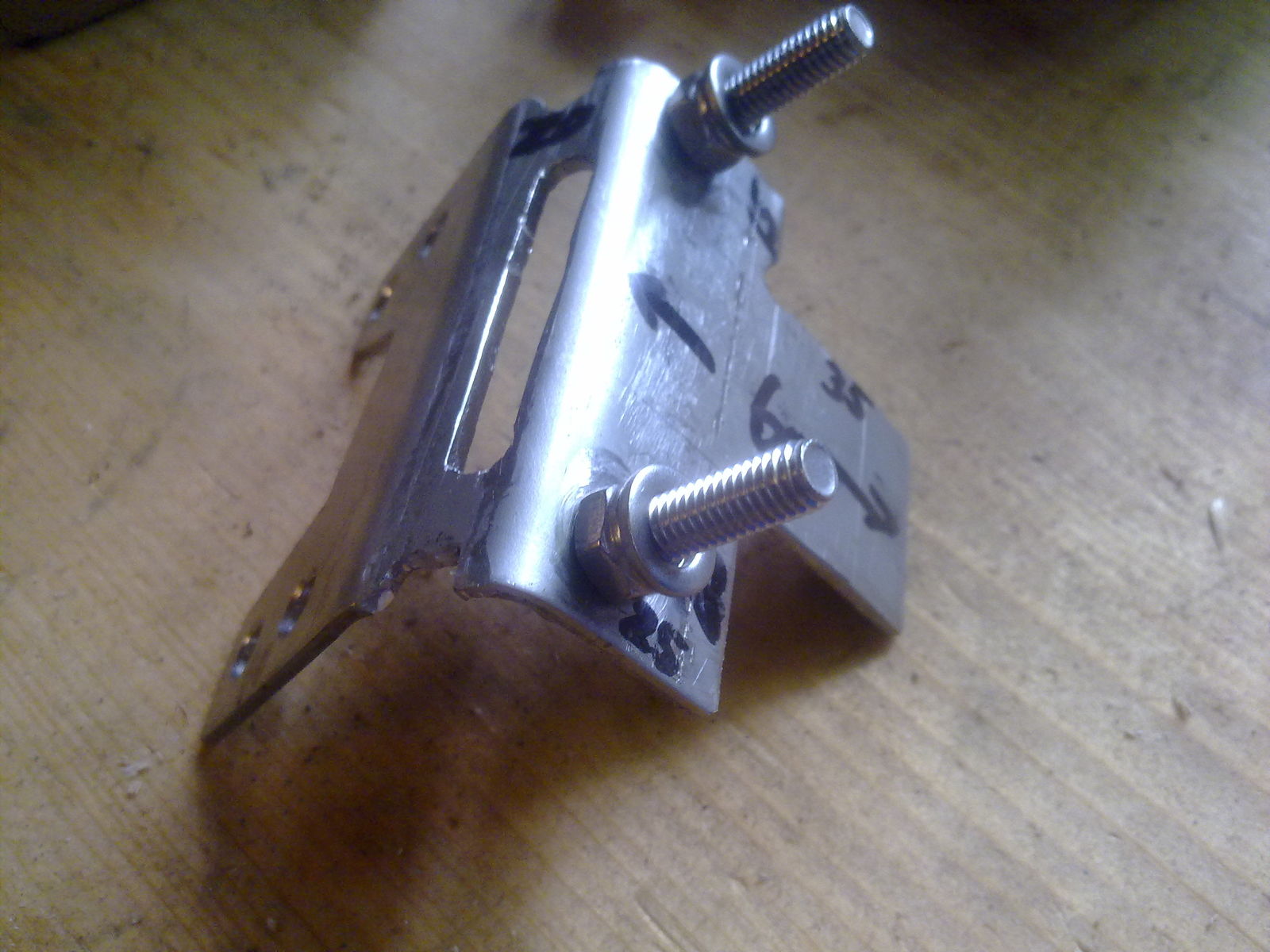 3. Die eigentliche Halterung ist ein Alu-U-Profil. In diesem sind seitlich Langlöcher drin. Und der Navi-Sockel ist auf eine Platte geschraubt. Die Platte mit einem Rohr verschweisst und mittels Schraube an der Halterung befestigt. Somit kann man die Neigung verändern…