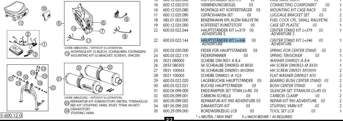 ich weiß es nicht sicher. Auf alle Fälle hatten in 2003 weder die 950 ADV-S mit 265mm Federweg noch die Normaloversion mit 230mm Federweg einen serienmäßigen Hauptständer, den Kit mußte man extra ordern. Wobei ich meine mich zu erinnern, daß es anfangs nur diesen einen Kit zum Nachrüsten gab, welcher für die 950S gut gepasst hat (ich hatte ihn montiert), aber natürlich für die niedrigere, silbergraue 950ADV zu lang war. Ich würde mich lieber am offiziellen, aktuellen Teilekatalog aus meinem obigen Link orientieren, also 319mm respektive 349mm. Das stimmt dann auch mit der Differenz der Federwege überein.