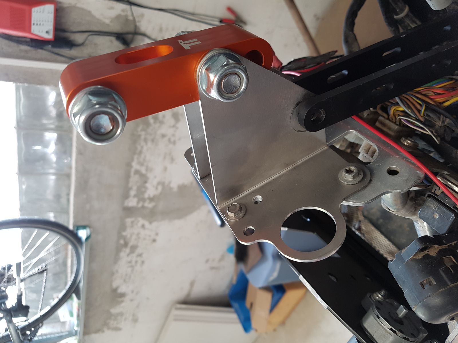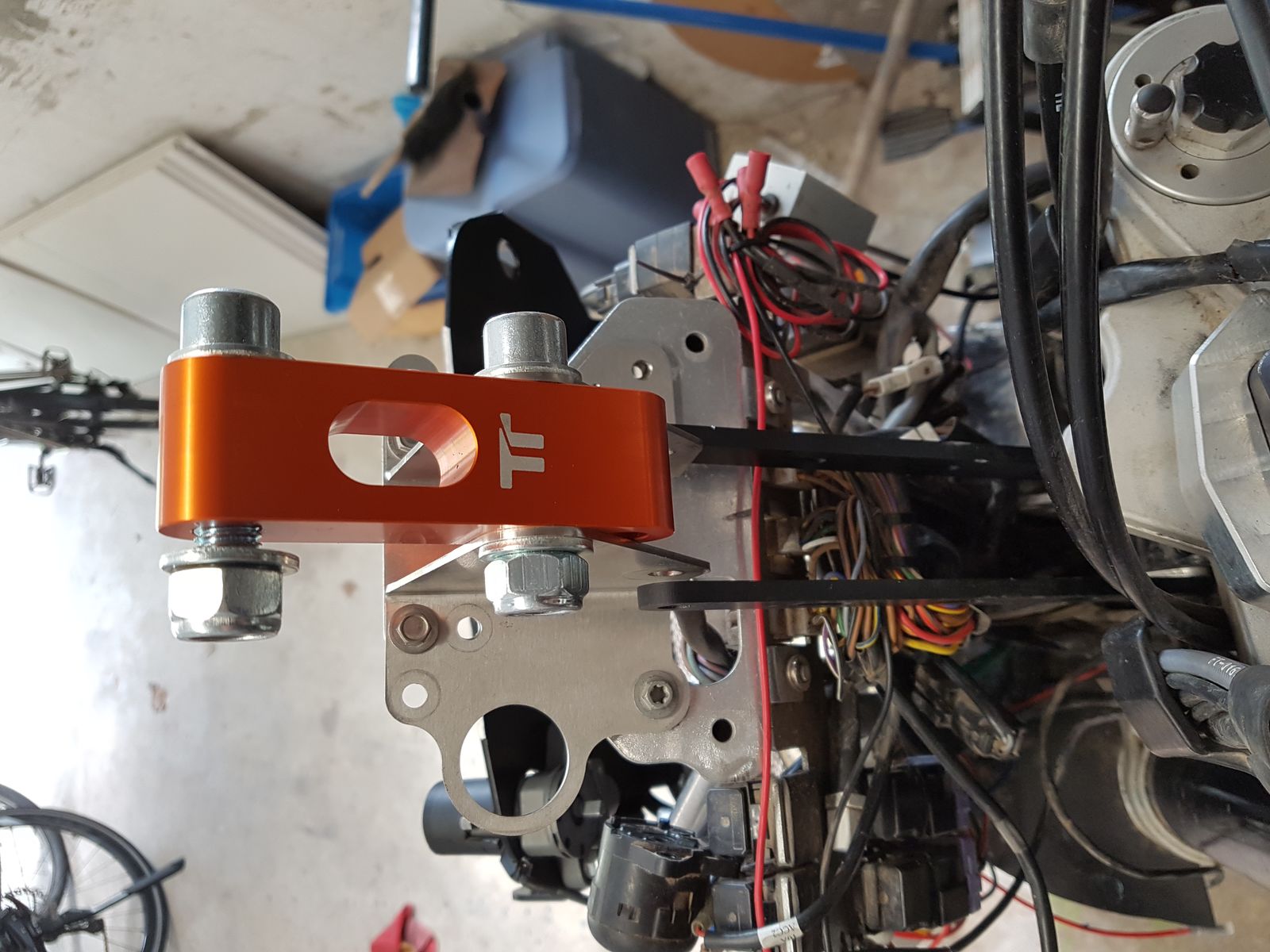 Günstiger weise konnte ich meine vorhandene Grundplatte für den Touratech Tripmaster und die Roadbook/GPS Grundplatte zügig an den orangen Arm befestigen.