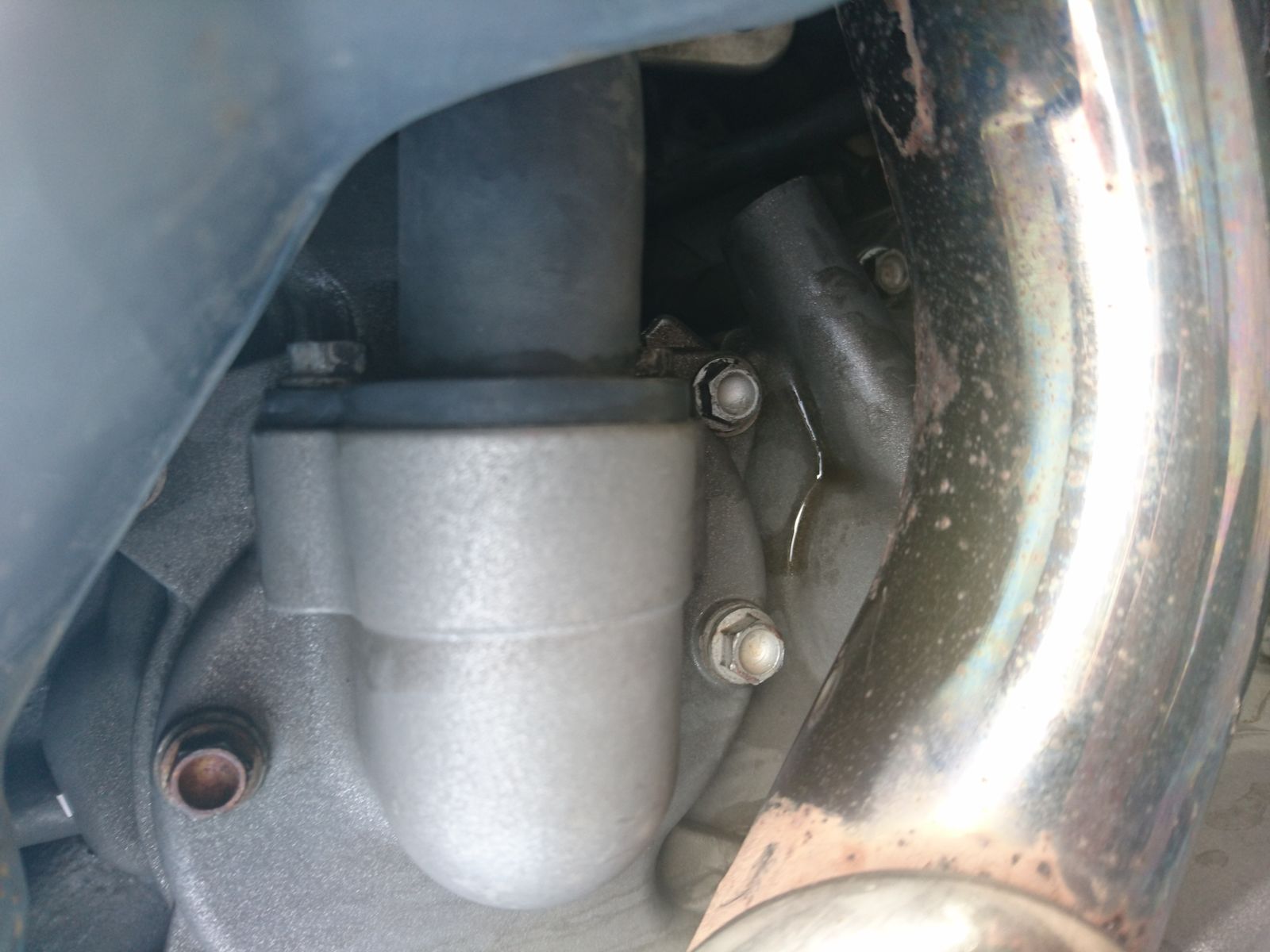 Bist du sicher das es Öl ist? Wenn es an dem dicken schwarzen rohr raus kommt, dann ist es kühlflüssigkeit...die Kisten werden am Übergang Pumpe zu diesem rohr ganz gerne undicht.