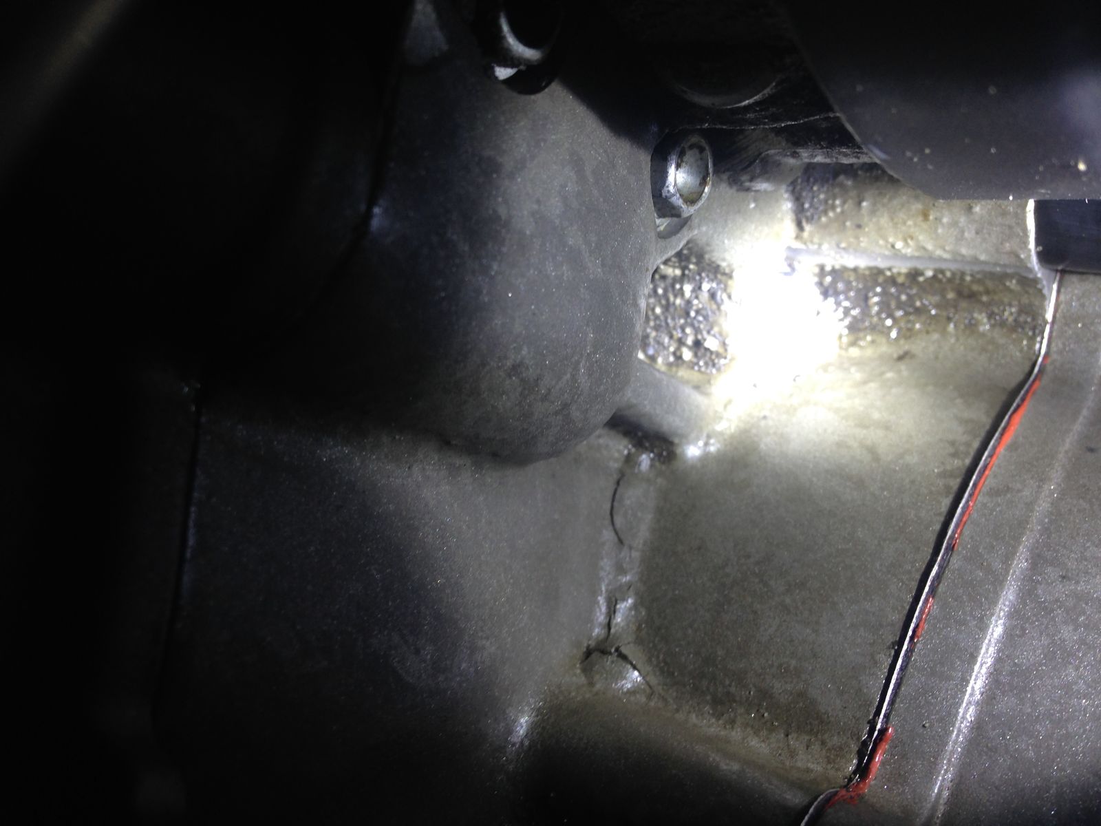 gestern bei der Suche nach einem Oelleck, am hinteren Zylinderfuss links, diesen 'Riss' gesehen. Das Oel scheint da nicht rauszukommen, aber toll siehts auch nicht aus. Hab noch bei meinem alten Motor geschaut. Da sieht es aehnlich aus, allerdings nicht so ausgepraegt.