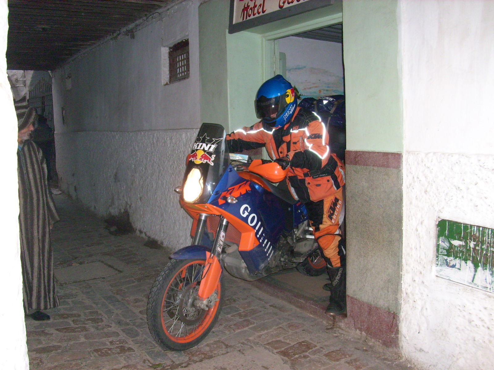 Ja die blaue Stadt, Instagram-Hipster-Ziel erster Güte. Gut für uns um Marokko und die letzten Fahrtage samt Kamelen, Skorpionen und Sanddünen nochmal wirken zu lassen. Untergebracht diesmal etwas Außerhalb, kleines Hotel, rosa Zimmer mit Herzl Bettwäsche – scharf. Nach Marrakech sind die Souks für uns eine Kaffeefahrt im Luxusliner. Wir verhandeln und feilschen damit wir noch möglichst gescheiten Plunder für die letzten Münzen in Fremdwährung erhalten. Ich lasse die Bikes abwaschen, der Typ am Reiniger hat einen chilligen Job: immer mal ein Auto waschen, in die Butze gehen eine Haschpfeife rauchen, mit Leuten schnacken and so on…