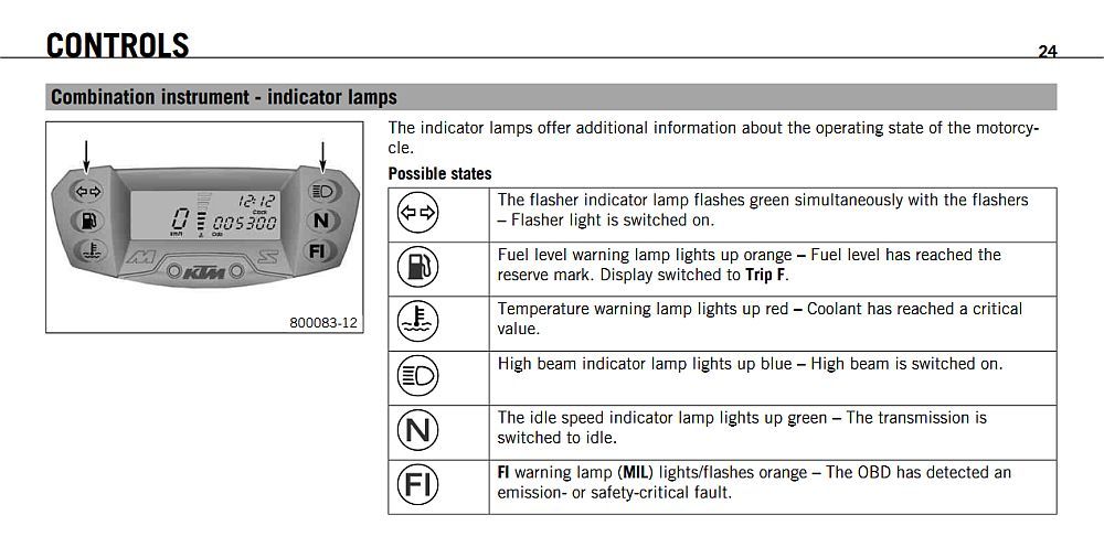 Eigentlich braucht man nur Blinker, Fernlicht und Öldruck, dazu noch die Tankanzeige.