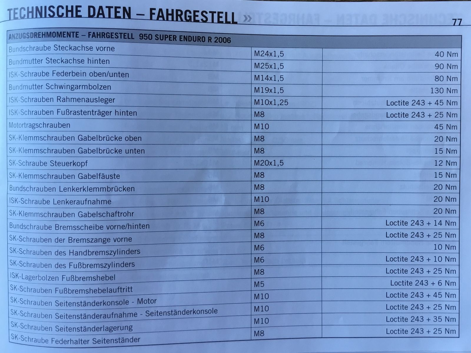 [ KB ] Anzugsdrehmomente Fahrgestell Superenduro 2006