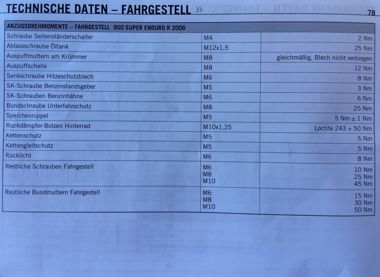 Titel: [ KB ] Anzugsdrehmomente Fahrgestell Superenduro 2006