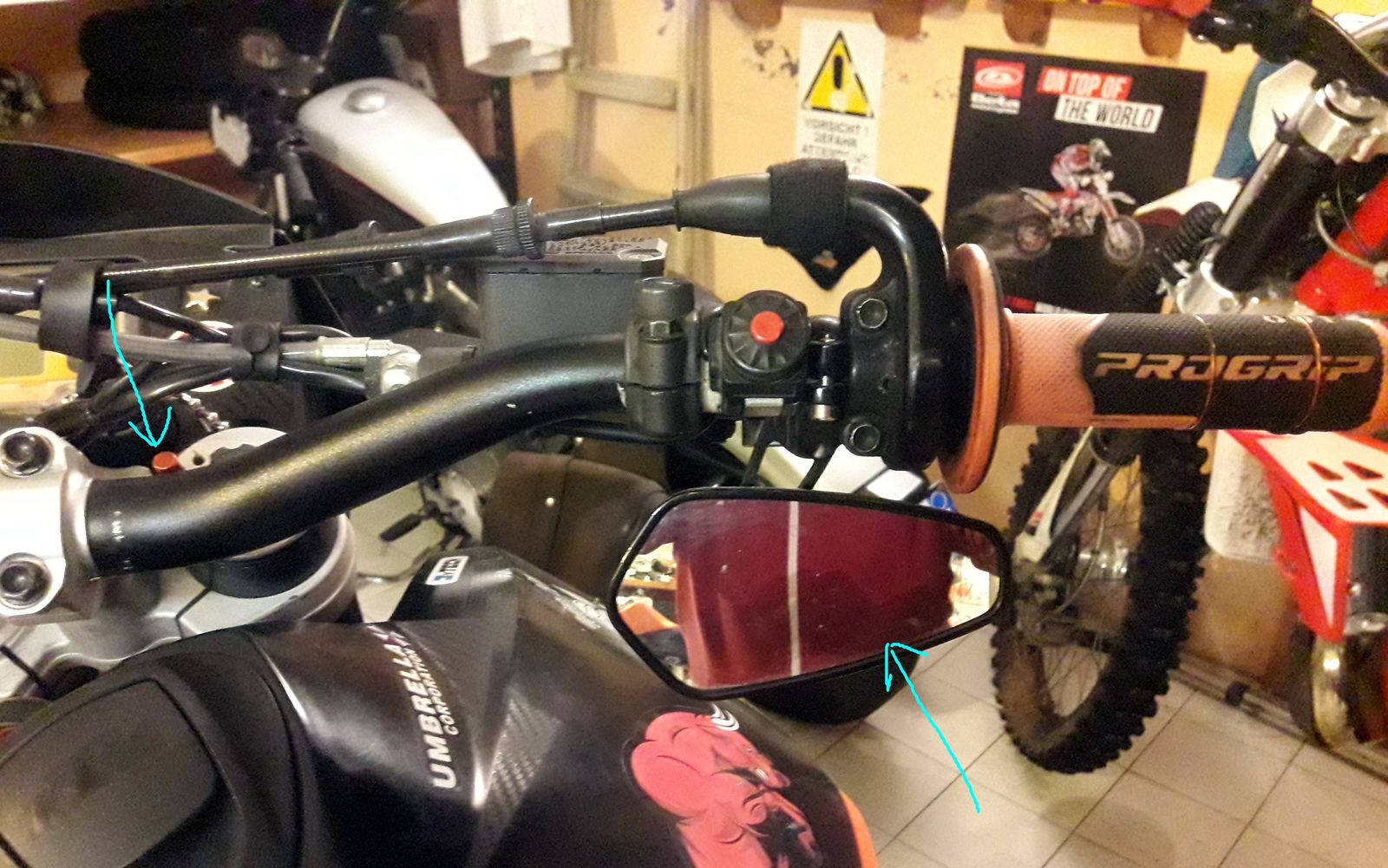 - Lenkerhebel kurz und in orangem Alu , Starttaster auch auf der linken Seite.